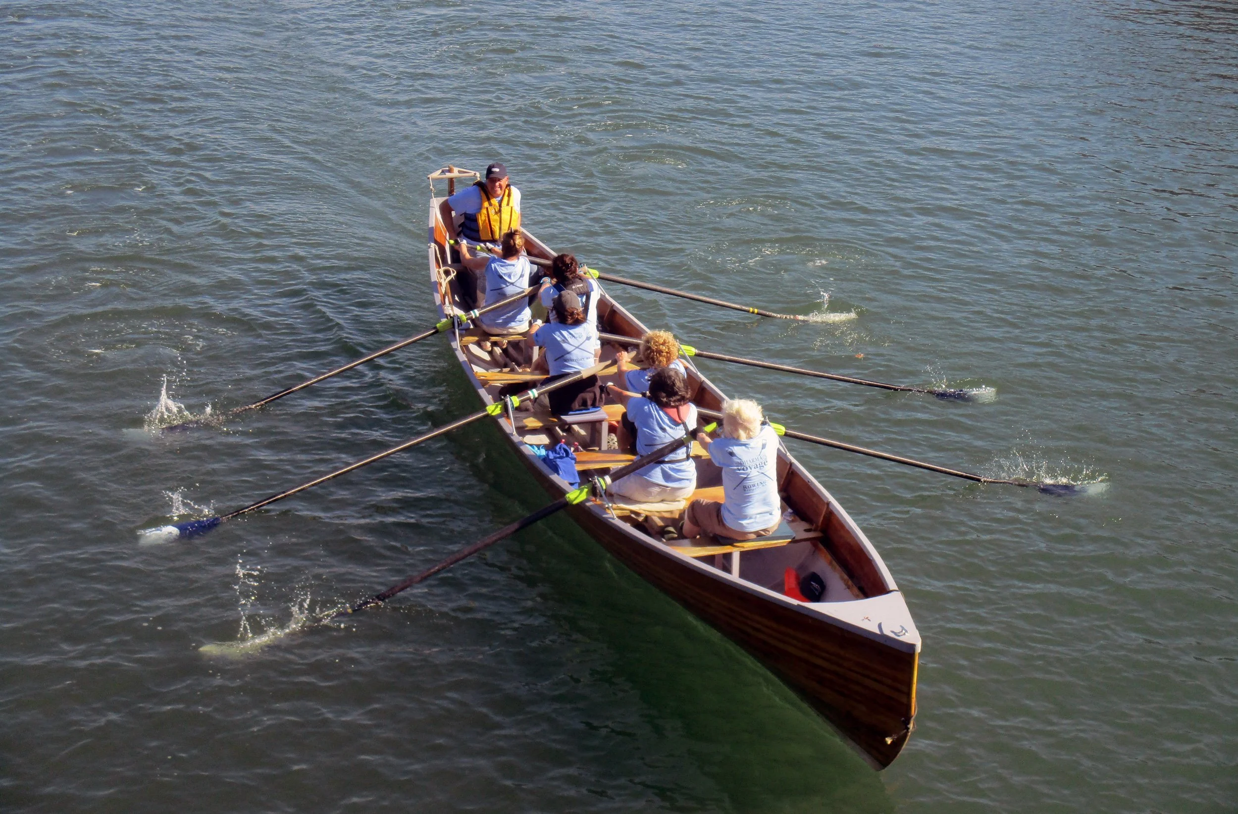 Dharma Voyage Adult Community Rowing is a very important part of my life. I get a great deal of satisfaction steering a boat. When all the rowers are in sync making the boat move smoothly and speedily through the water, I feel as if I accomplished something very special.”